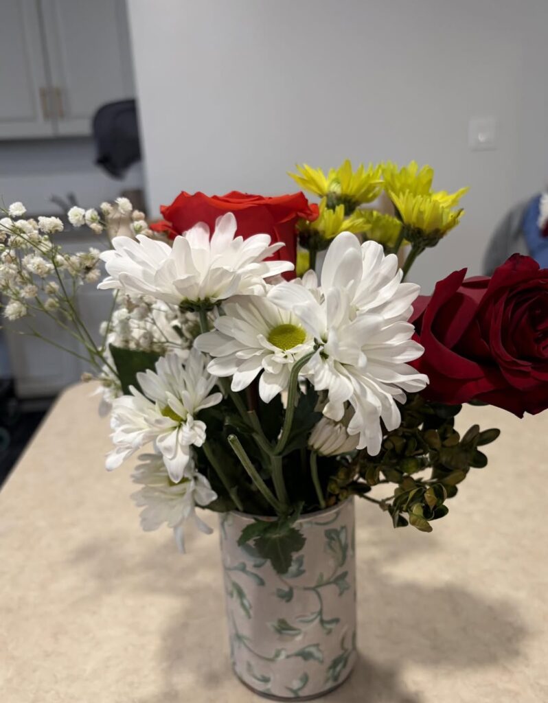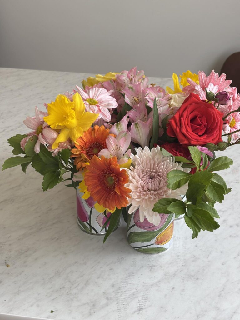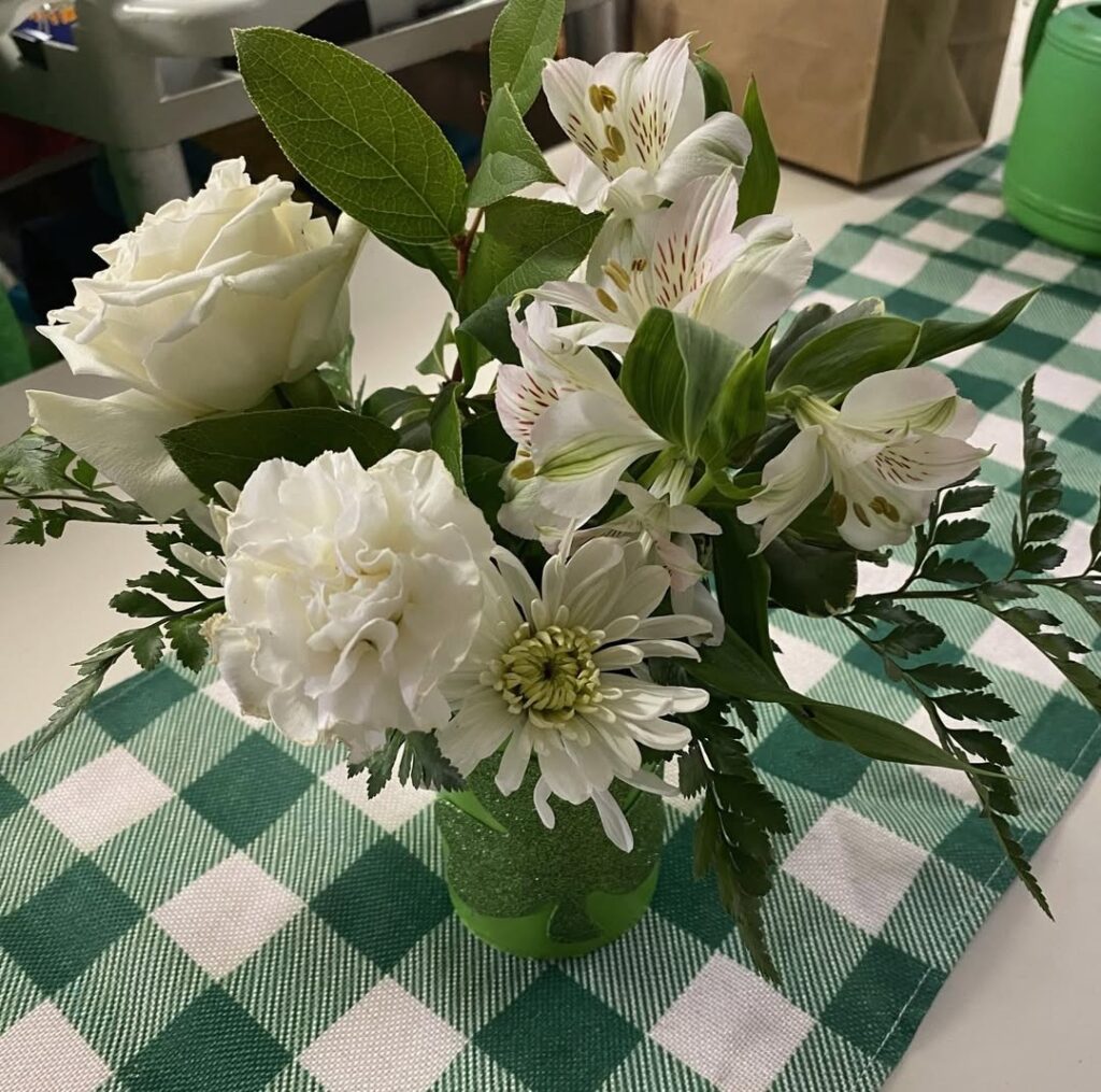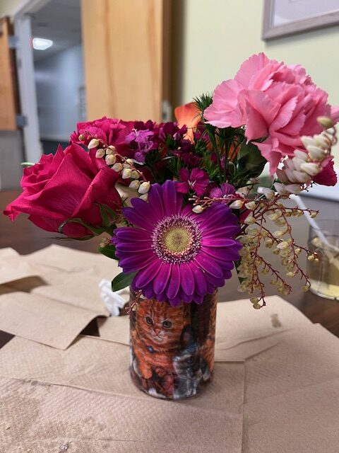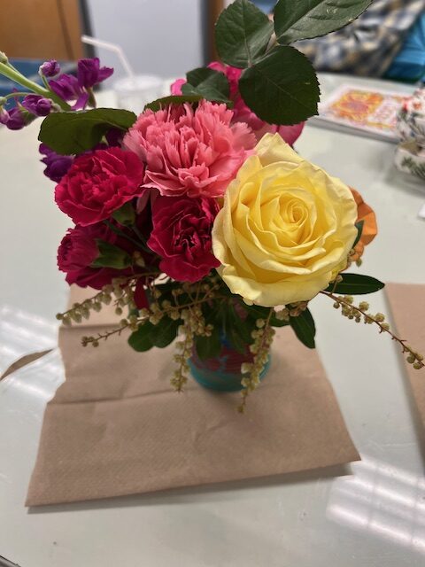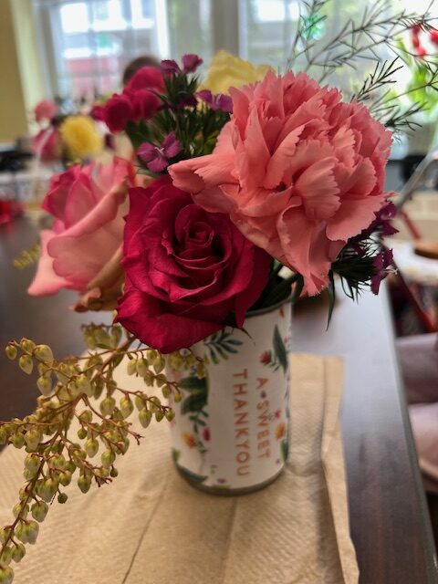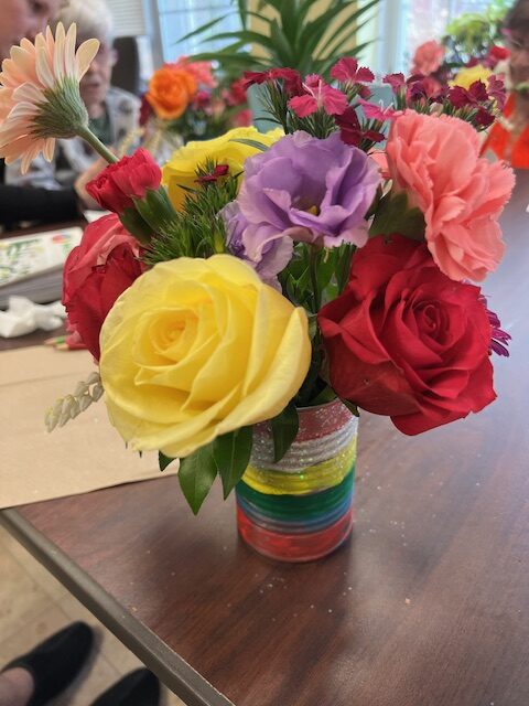 Beautiful arrangements that can even fit on a rolling walker! Our seniors are so creative! Thanks to Lily & Vine Floral Design in Torrington, CT for donating the lovely flowers.
