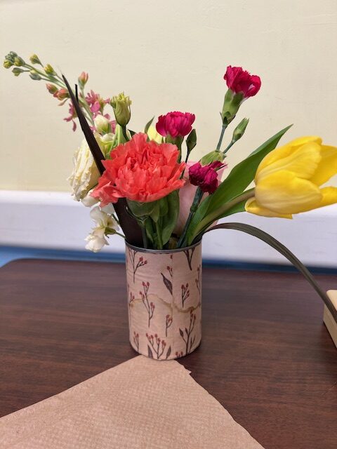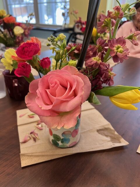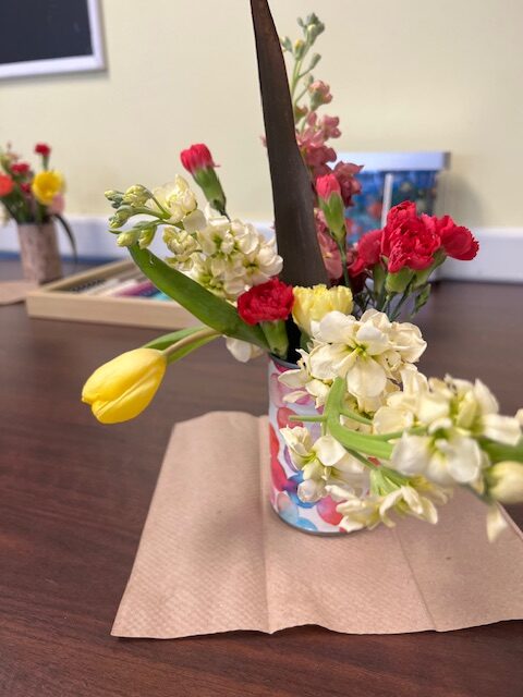 Beautiful arrangements that can even fit on a rolling walker! Our seniors are so creative! Thanks to Lily & Vine Floral Design in Torrington, CT for donating the lovely flowers.
